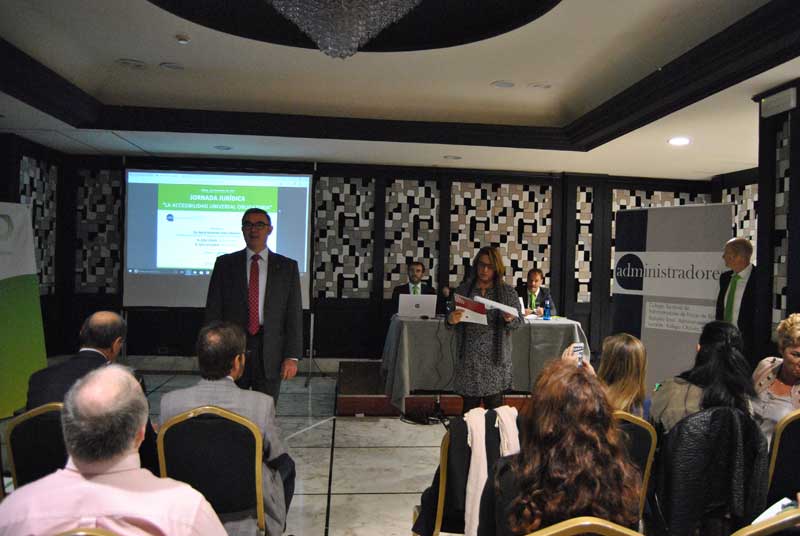 La jornada fue un éxito, la ponente Doña María Fernández-Hierro expuso de una manera clara y cercana todo el contexto normativo que rodea el RD 1/13 de 29 de noviembre por el que se aprueba el Texto Refundido de la Ley General de derechos de las personas con discapacidad y de su inclusión social. Se establece en la disposición adicional tercera, el 4 de diciembre de 2017 como la fecha máxima para alcanzar las condiciones básicas de accesibilidad en todos los edificios residenciales y públicos.